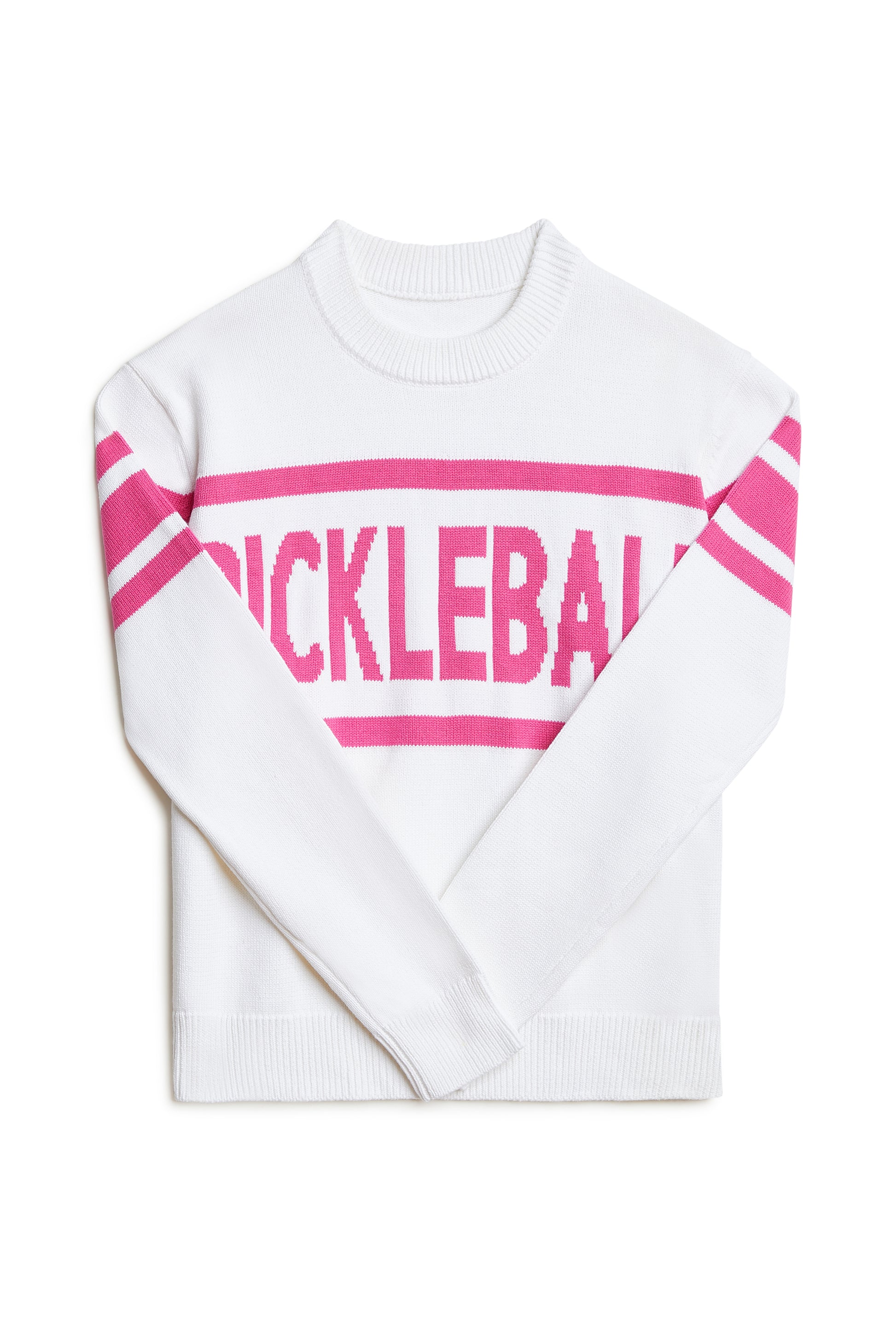 The Pickleball Essential Crewneck Sweater is the perfect sweater for before or after your pickleball game. Pair with your pickleball skirt, leggings or white jeans for a casually elegant look. 100% luxurious cotton weave, rib cuffs, rib hem. Machine wash cold or dry clean.
